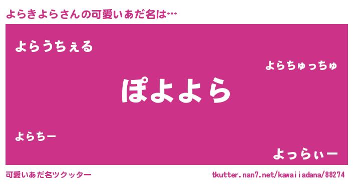 | ヘコむあだ名 | 『よらっちょ』『牛乳』『よらにゅー』 |