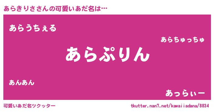 | 恥ずかしいあだ名 | 『アラキリサデラックス』『アラリンリン』 |