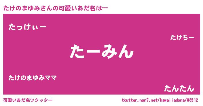 | ヘコむあだ名 | 『たけお』『たけもー』『なまこ酢』 |