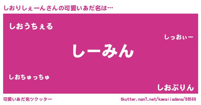 | 意味不明あだ名 | 『自称しおりしぇーん』 |