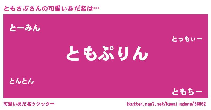 | 女子向けラノベタイトル風あだ名 | 『ともさぶの玉の輿計画!』 |