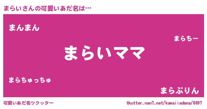 | 意味不明あだ名 | 『永久保存まらい』『ペロリンまらい』 |