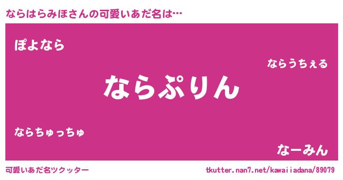 | ヘコむあだ名 | 『ならっふぃ~』『ならはらみほ(小並感)』 |