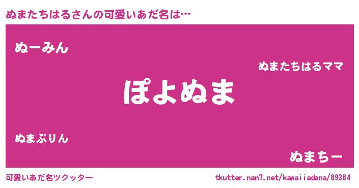 | ヒーロー風カッコイイあだ名 | 『仮面ヌマダー』『ネオヌマタチハル』 |