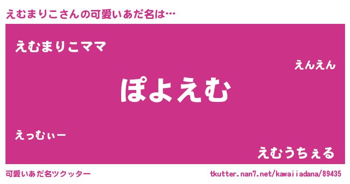 | ヘコむあだ名 | 『えむまりこ(遠い目)』『えむっふぃ~』 |