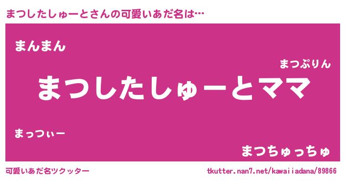 | 胡散臭い通販商品みたいなあだ名 | 『来世でも幸せになれる健康食品…その名も「まつしたしゅーと」』 |