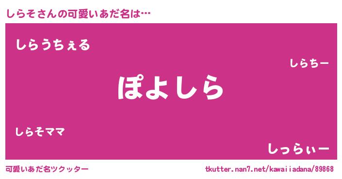 | 意味不明あだ名 | 『住所不定無職しらそ(79歳)』『自称しらそ』 |