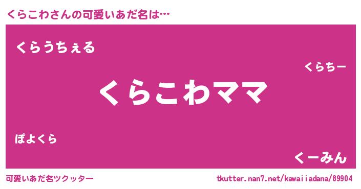 | 男性向けラノベタイトル風あだ名 | 『くらこわという概念が存在しない退屈な世界 』 |