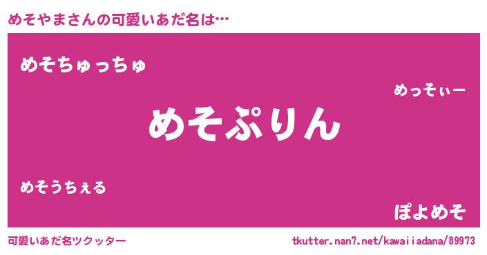 | 男性向けラノベタイトル風あだ名 | 『めそやま~年齢イコール彼女いない歴の魔法使い~』 |