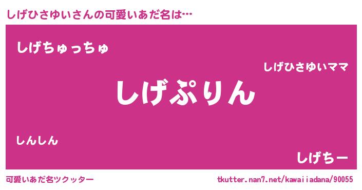 | 男性向けラノベタイトル風あだ名 | 『しげひさゆい~年齢イコール彼女いない歴の魔法使い~』 |