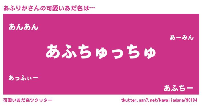 | ヒーロー風カッコイイあだ名 | 『正義の使者あふりか』『魔戒騎士アフ』 |