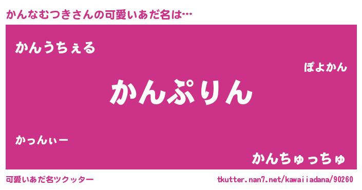 | 男性向けラノベタイトル風あだ名 | 『かんなむつき~年齢イコール彼女いない歴の魔法使い~』 |