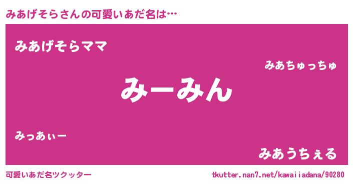 | ヘコむあだ名 | 『みあげそら(遠い目)』『みあぷりん』 |