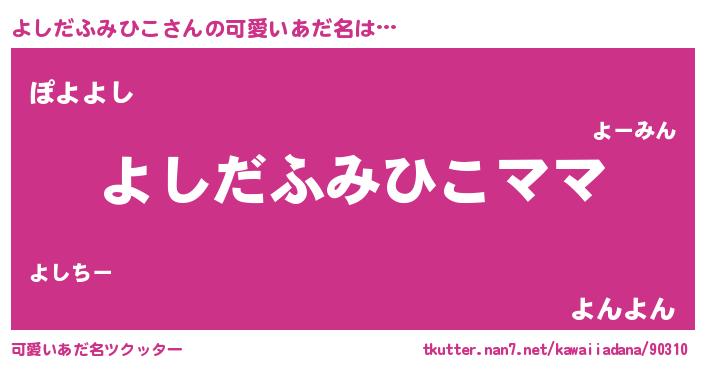 | 恥ずかしいあだ名 | 『よしちん』『プリティーよしだふみひこ』 |
