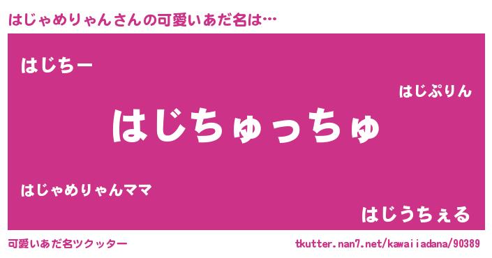 | 女子向けラノベタイトル風あだ名 | 『はじゃめりゃん夫妻のなれそめ』 |