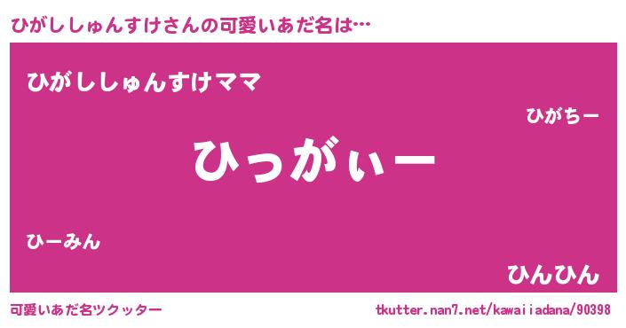 | 男性向けラノベタイトル風あだ名 | 『ひがししゅんすけの嫁は女の子じゃないと思った?』 |