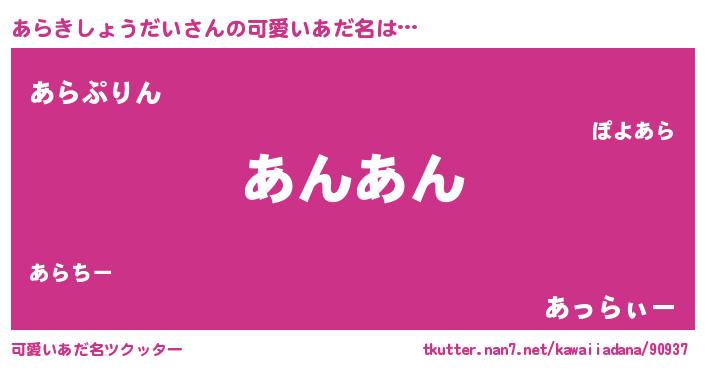 | 胡散臭い通販商品みたいなあだ名 | 『モテモテ間違いなし霊験あらたかなお札…その名も「あらきしょうだい」』 |