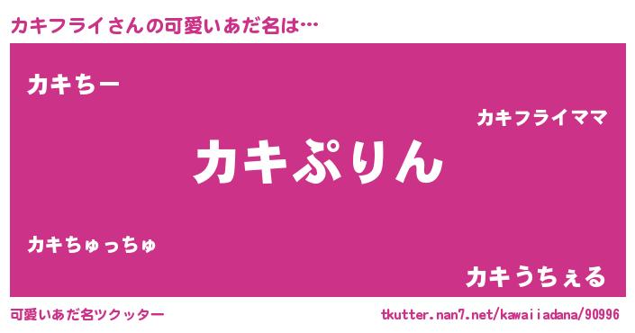 | 女子向けラノベタイトル風あだ名 | 『カキフライの玉の輿計画!』 |