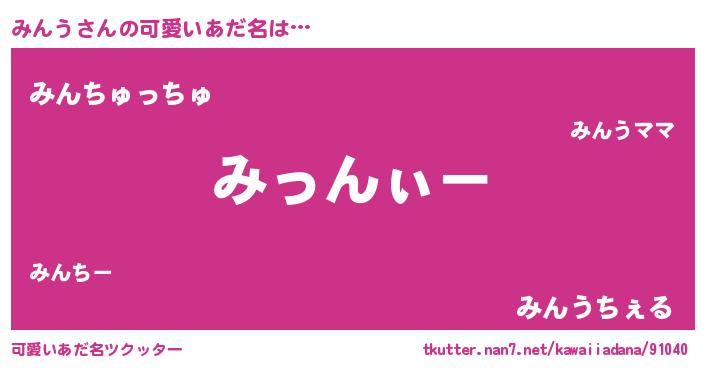 | 女子向けラノベタイトル風あだ名 | 『みんうの卵を拾いまして』 |