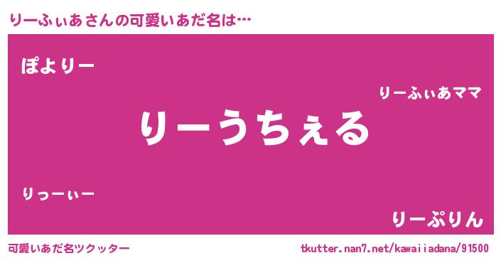 | 意味不明あだ名 | 『自称りーふぃあ』『永久保存りーふぃあ』 |