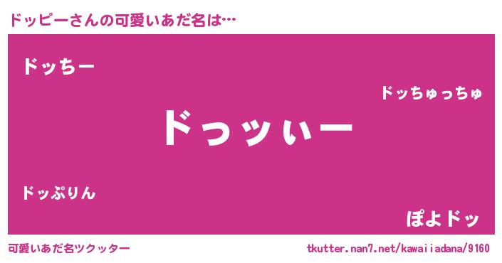 | 男性向けラノベタイトル風あだ名 | 『ドッピーの嫁は女の子じゃないと思った?』 |