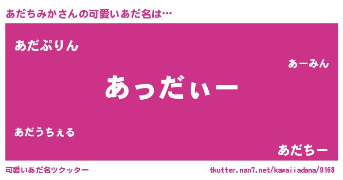 | ポケモン風あだ名 | 『ヒアダチミカ』『アダキング』 |