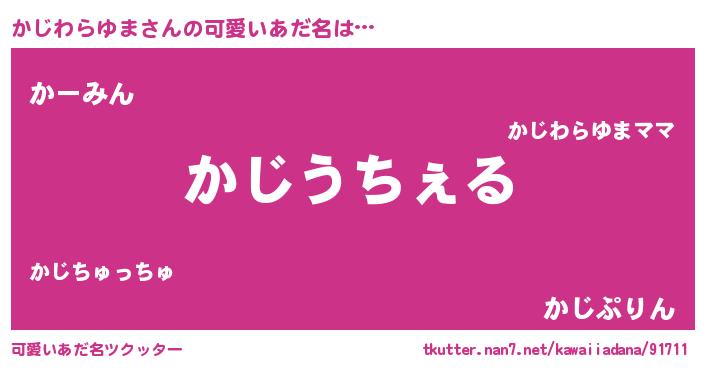 | 恥ずかしいあだ名 | 『カジワラユマデラックス』『かじちん』 |