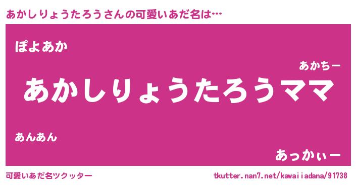 | ヘコむあだ名 | 『あかしりょうたろう(苦笑)』『あかっぺ』 |