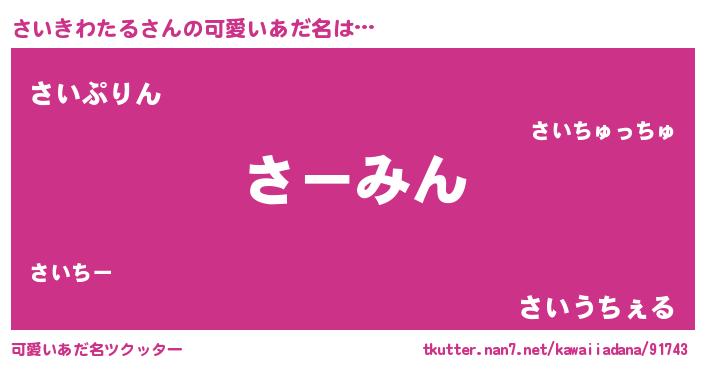 | 男性向けラノベタイトル風あだ名 | 『さいきわたるに滅ぼされるだけの簡単なお仕事です』 |