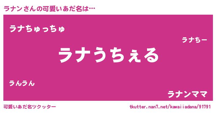 | 恥ずかしいあだ名 | 『ラナンデラックス』『ラナちん』 |