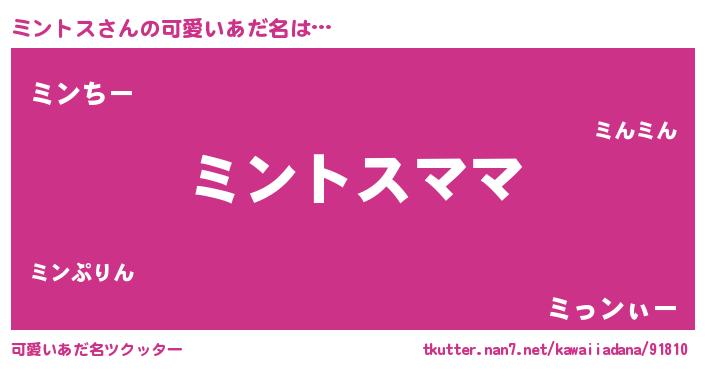 | 意味不明あだ名 | 『永久保存ミントス』『ペロリンミントス』 |