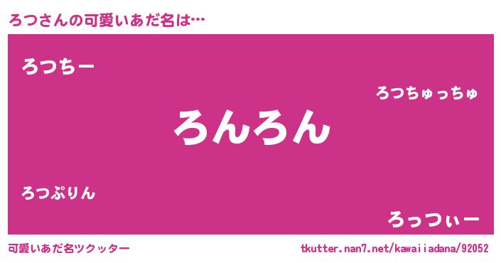 | 意味不明あだ名 | 『ペロリンろつ』『ろつフォーエバー』 |