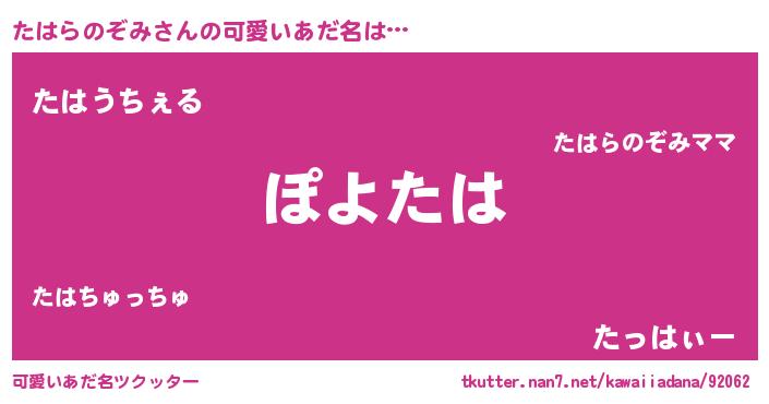 | 意味不明あだ名 | 『住所不定無職たはらのぞみ(3歳)』 |