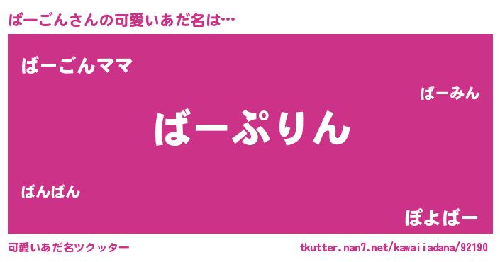| 料理風あだ名 | 『ばーごんごはん』 |