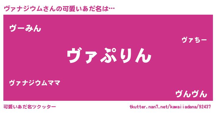 | 恥ずかしいあだ名 | 『プリティーヴァナジウム』『ヴァっちょ』 |