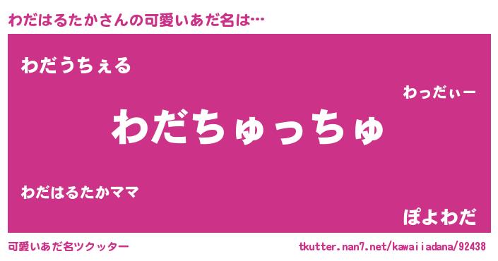 | 男性向けラノベタイトル風あだ名 | 『ノーゲーム・ノーワダハルタカ』 |