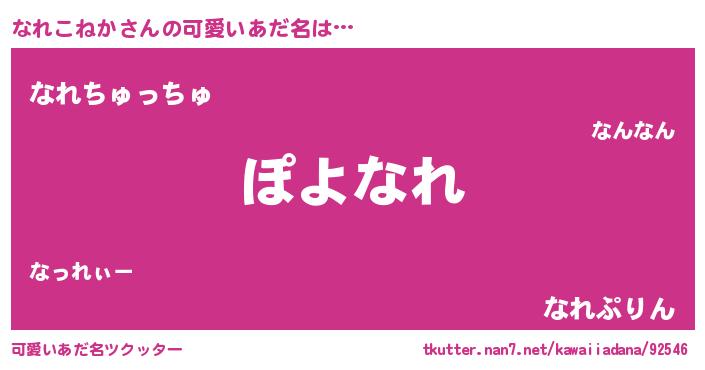 | 女子向けラノベタイトル風あだ名 | 『なれこねかが死なない童話 林檎のなれこねかの診療簿』 |