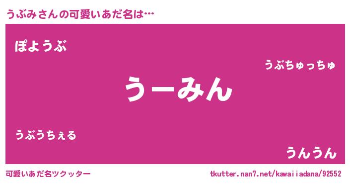 | 恥ずかしいあだ名 | 『プリティーうぶみ』『ウブミデラックス』 |