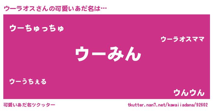 | ヘコむあだ名 | 『ウーにー』『ウーラオス(笑)』 |