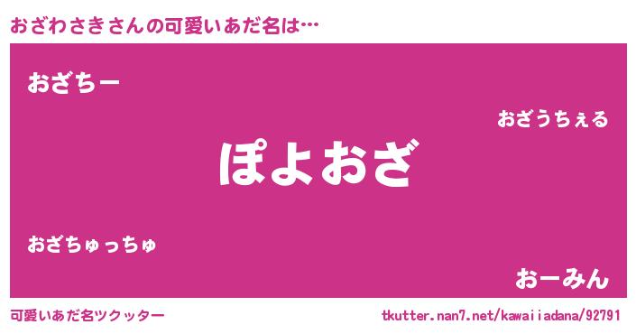 女子向けラノベタイトル風あだ名 | 『乙女ゲームの破滅フラグしかない悪役おざわさきに転生してしまった…』 |