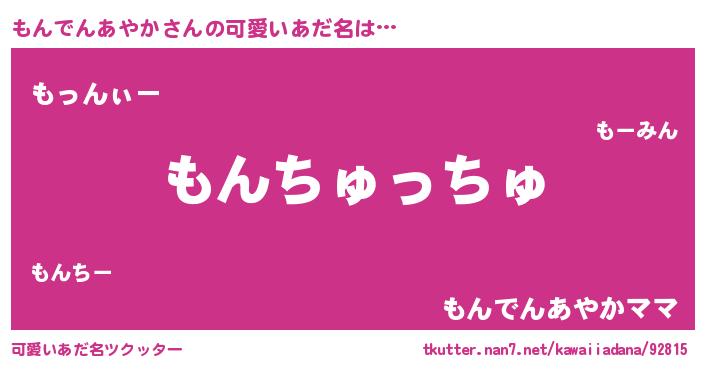 | ヘコむあだ名 | 『もんお』『もんでんあやか(爆)』 |