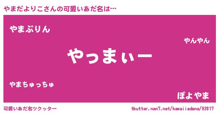 | 男性向けラノベタイトル風あだ名 | 『やまだよりこの嫁は女の子じゃないと思った?』 |