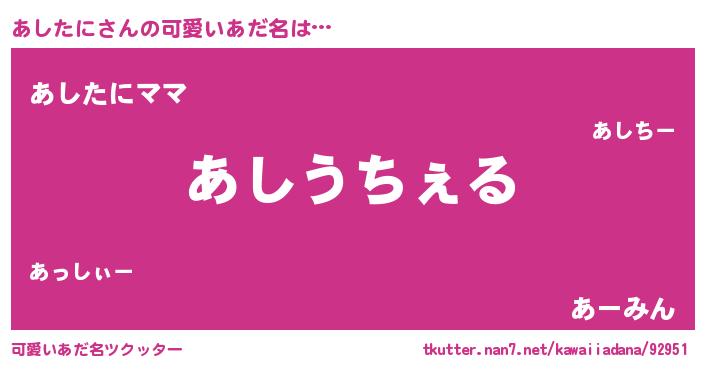 | 意味不明あだ名 | 『自称あしたに』『永久保存あしたに』 |
