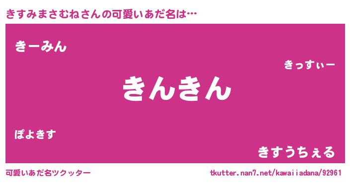 | 男性向けラノベタイトル風あだ名 | 『きすみまさむねの憂鬱』 |