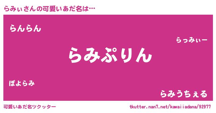 | 恥ずかしいあだ名 | 『プリティーらみぃ』『ラミィデラックス』 |