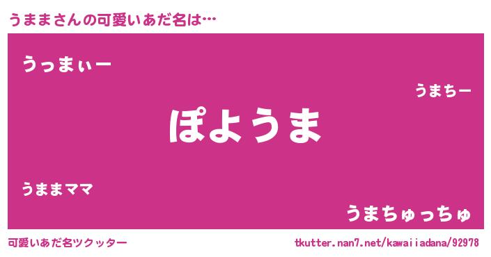 | ポケモン風あだ名 | 『ウーマイ』『ヒウママ』『ゼニウマ』 |