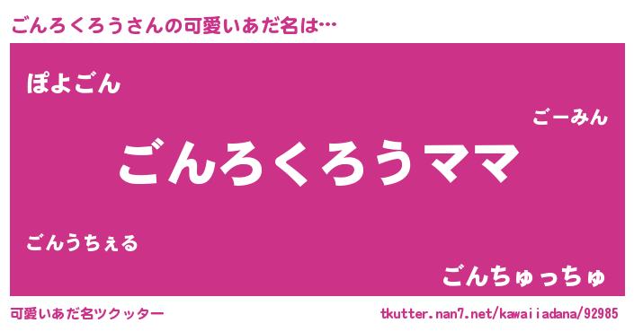 ヘコむあだ名 | 『ごんろくろう(震え声)』『ごんっふぃ~』 |