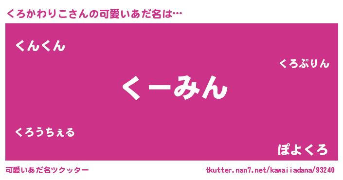 | 恥ずかしいあだ名 | 『プリティーくろかわりこ』『くろちん』 |