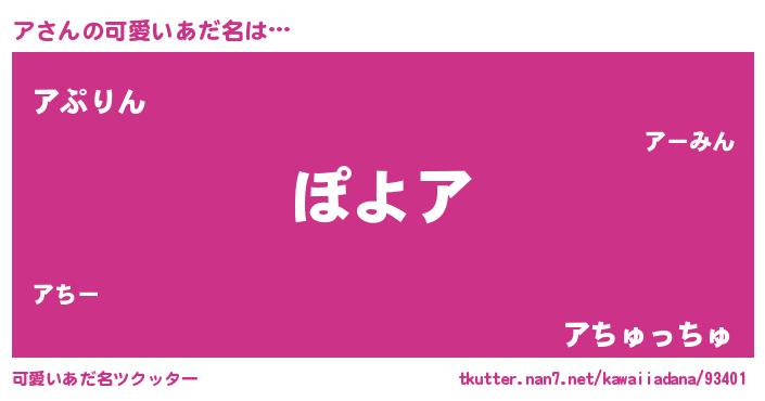 | 男性向けラノベタイトル風あだ名 | 『魔弾の王とア』『転生したらアだった件』 |