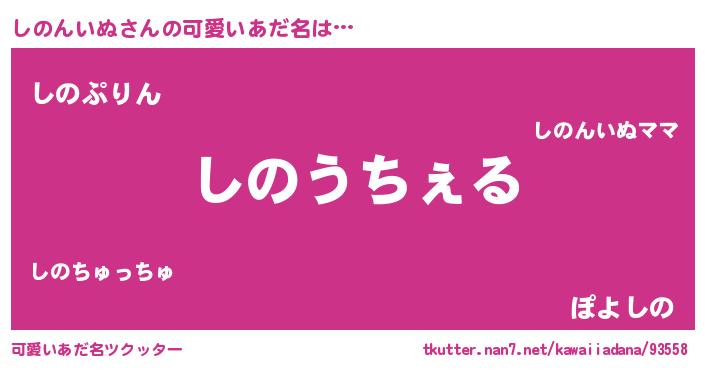 | 男性向けラノベタイトル風あだ名 | 『Re:しのんいぬから始める異世界生活』 |